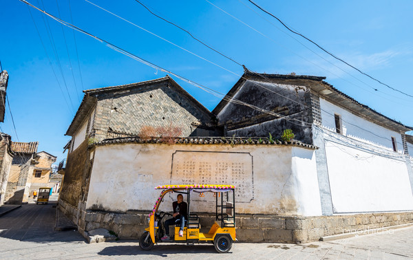 喜洲古镇的核心区域依然依然被称为四方街,只是规模不算大,但整个古镇还是挺大的,所以可以坐一个这种当地居民开的小黄车,10元,价格很便宜,当然他期间会带你去一些根雕店、刺绣店、茶店之类的,其实也没什么,毕竟10元太便宜,别人也是要赚钱养家的,你不买就行了,就当让他拉你在古镇逛一圈,看到有兴趣的地方也可以让他停下来你拍照。