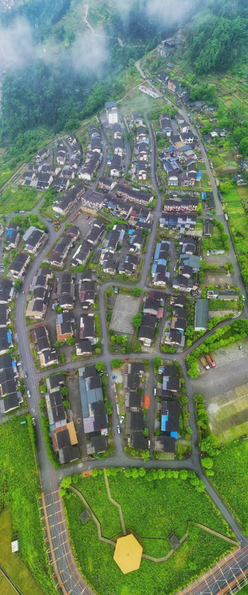 这红瓦、白墙、云雾之间安居乐业。