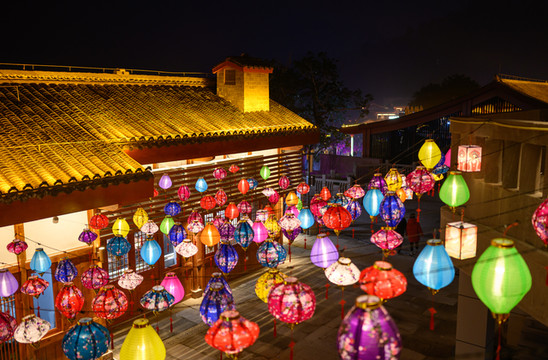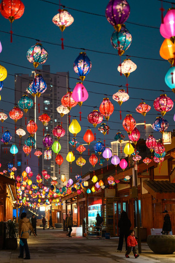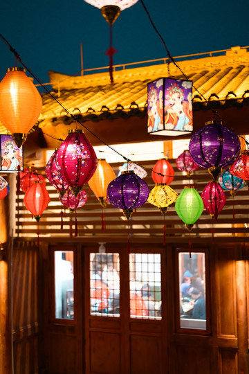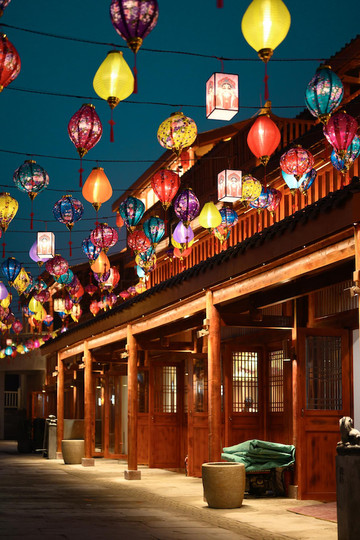 流光溢彩的花灯连接起街道两侧,将古镇浸没在温馨的光影里,高高挂起、五彩斑斓的灯笼,将沿口古镇的浪漫又一次具象化,我可真是被硬控住啦。