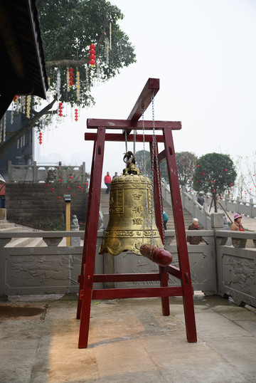 庙内有关公坐镇,房间里能赏武胜非遗剪纸,门口处还有一个非遗牛皮鼓和一口大钟可以打卡。