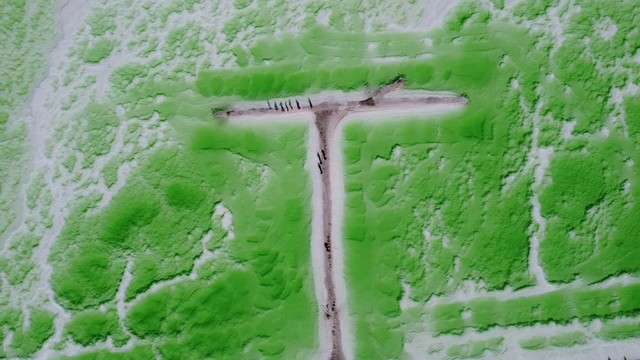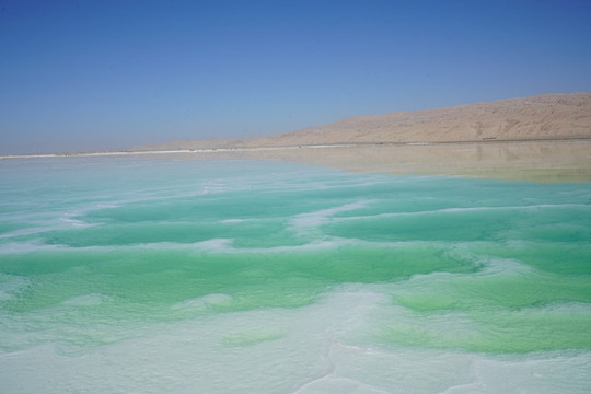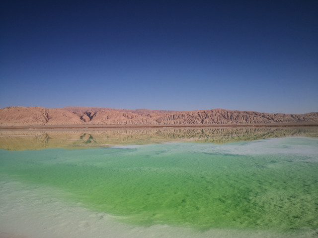 茫崖翡翠湖,规模比大柴旦翡翠湖要大,开车逆时针绕行一圈,各种绿色映入眼中,盐池深浅不一、形态迥异,纯美剔透,如同镶嵌在戈壁上的翠玉,是名副其实的翡翠湖。