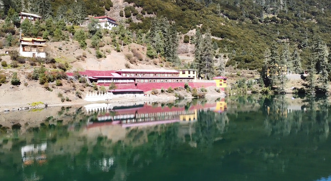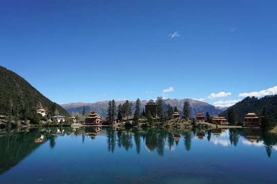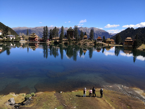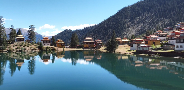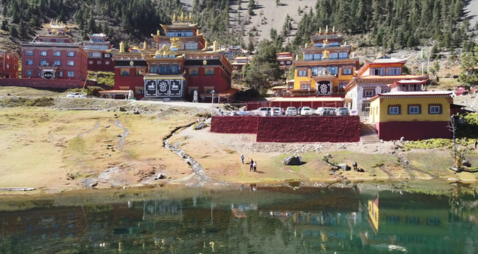 湖畔的措卡寺,建筑精致