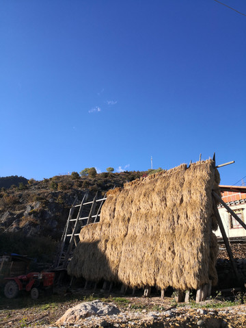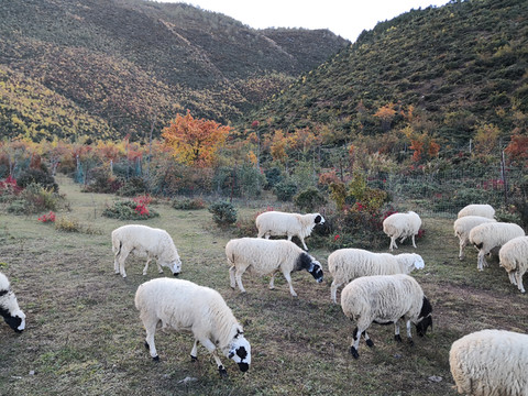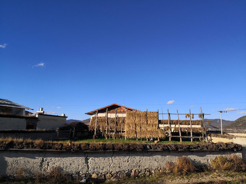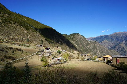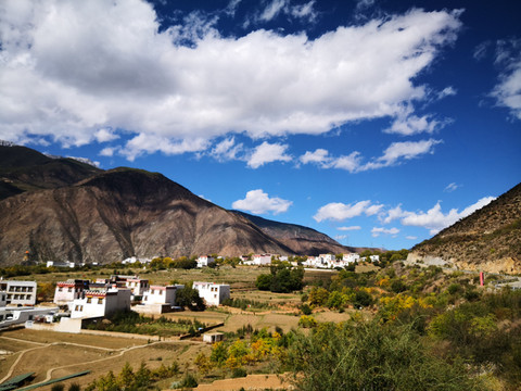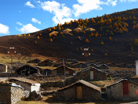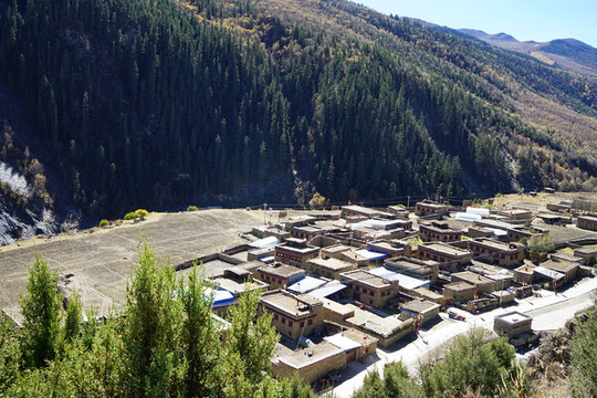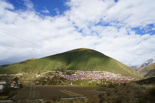 山脚下一片红色藏居
