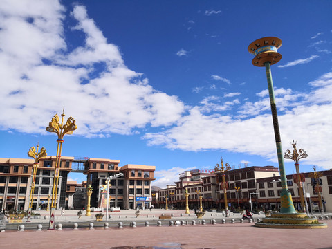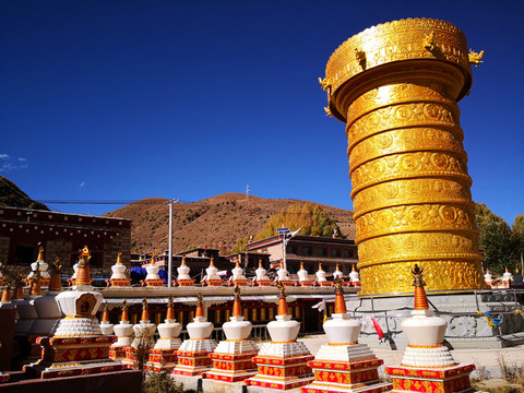 色达的广场,矗立着巨大的转经筒