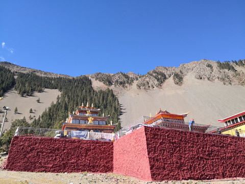 山脚寺庙和白塔
