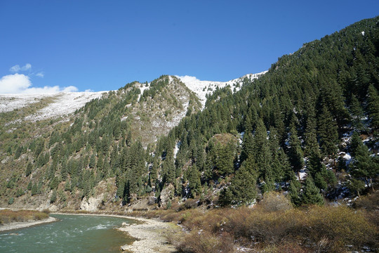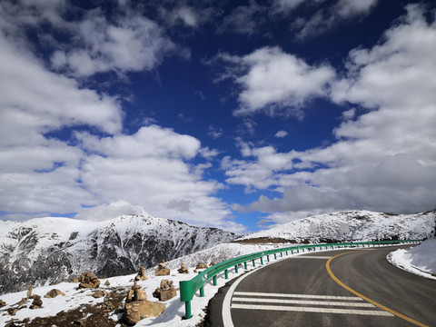 一路翻越了好几个海拔4千以上的垭口,山上积雪覆盖,山下树木青翠