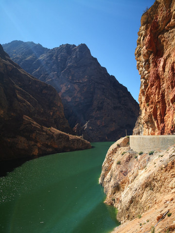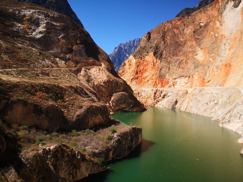 从乡城往云南迪庆的香格里拉,走一条新修的公路,沿路碧绿的河流相伴