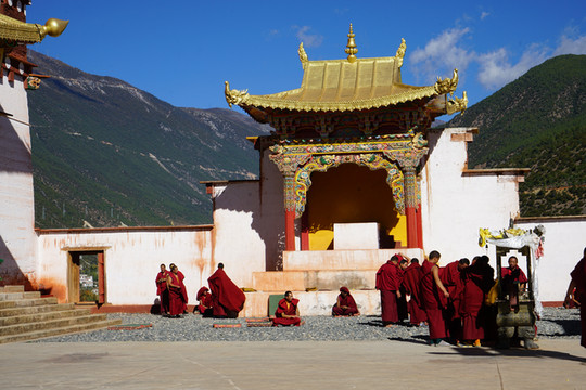 色达,不止佛学院,还有东嘎寺。东嘎寺建于十六世纪初,有500多年的历史,是黄教扎什伦布寺的分寺,位于金马草原上。