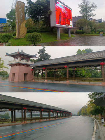 景区游客中心到景区收费入口还有1公里多路的距离,一开始是一个超长的仿古走廊,晴天雨天都方便,一路上可以走走看看,主要是看东风堰与田野的风景,其实很美。