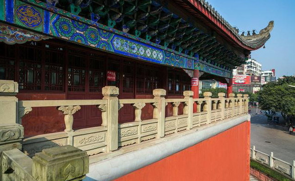 大观楼原名谯楼,位于宜宾市西街口,建于明代,清嘉庆年间焚毁,乾隆乙酉年(1765年)重建,是宜宾市的标志性建筑。大观楼整个楼形建筑精美典雅,巍峨雄壮,保持了我国传统的建筑风格,因为形似北京的天安门,在当地有“小天安门”之称。登楼眺望,远山如画,双江若带,令人心旷神怡。