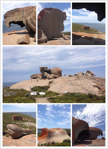 从轮渡口一路驱车前往神奇岩石/Remarkable Rocks、拱门/Admirals Arch、天涯海角灯塔/Cape du Couedic等景点,单程要开2个多小时。由于到现在还没有看到袋鼠的影子,每个人都期待袋鼠岛上有袋鼠出现,遗憾的是,望穿秋水也没有见到活袋鼠的影子,公路两旁倒是一只接一只被撞死的死袋鼠,大家开玩笑说“澳大利亚看来没有活袋鼠,有的是死袋鼠”。历史告诉我们,奇迹往往出现在你快放弃的时候。当参观完景点返回轮渡口的路上,先在路边发现了一只孤独的袋鼠,于是停车狂拍一通,就像见到了情人般。历史又告诉我们,奇迹往往一个接一个出现。正当大家沉浸在“终于见到活袋鼠了”的喜悦中时,路旁稍远处的草丛中出现了一群袋鼠,于是再次停车尖叫、拍照。