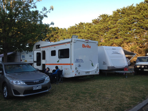 营地,听说澳大利亚的营地非常多,随时电话预定就行。取完房车和轿车已经是下午4点多了,赶紧打电话预定。结果,目的地周围的所有营地全部爆满fully booked,原因还是该死的长周末。不管三七二十一,按计划驱车前往Phillip Island看世界上最小的企鹅归巢Penguin Parade。等看完后,Google Maps一下最近的营地,直接杀奔那里碰运气,运气就是好,还有最后一个Powered Site,$90。经过这场风雨后,就再也没有遇到多没有营地的情况,每天都是午饭后电话预定当天晚上的营地。