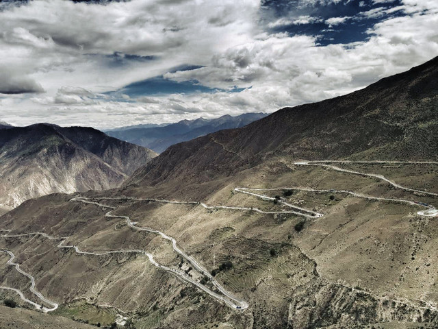 之后迅速爬升,只见山高谷深,澜沧江在山谷里流淌,高处看就是一条小河。318国道在这里蜿蜒曲折,沿着觉巴山山腰不断爬升,海拔在此达到3800。这里路陡风高,急弯多,我都不敢往下看,甚至有点害怕回程再走这里。