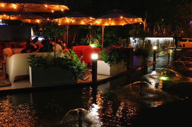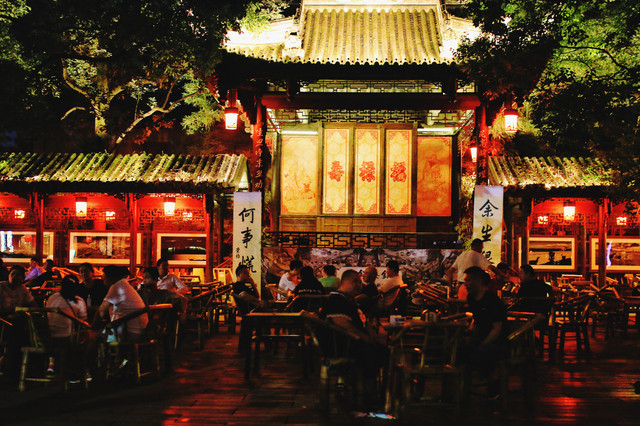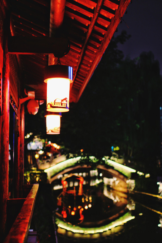 晚上来到距离交子大道地铁2站地的铁像寺水街。有点儿苏州山塘街夜景的感觉,但是建筑风格更现代。