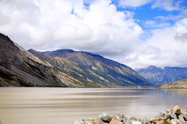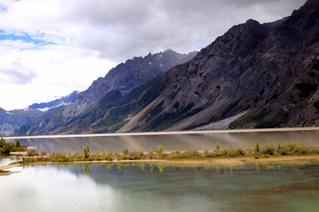 静静的然乌湖忽然开始乌云笼罩,雨即刻到来。