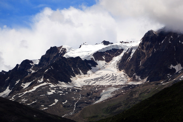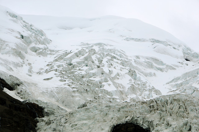在来古冰川山下,有藏民把开车上山的路堵住了,提供骑马上山看冰舌,每人收100?,或者辛苦一点,自己徒步爬到冰舌处。