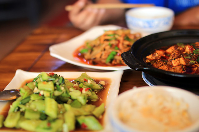 再前行50公里到达芒康县。正值中午,在芒康吃了点儿。这里川菜为王,凉拌黄瓜都是辣的。好在,美味可口。终于吃上黄瓜了。芒康南下可进入云南,西行通达拉萨。这里的蔬菜来自成都和云南,当地只种青稞,海拔3875