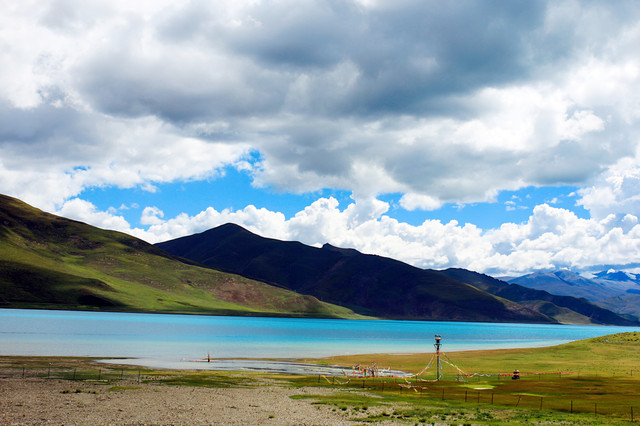 拉萨通往羊湖的路限速,有一段59公里的环湖路,限两个小时10分钟通过。羊湖现在开始收费了,但也可以不买票,因为它是通往日喀则的必经之地,公路绕羊湖走,羊湖的美在每个角度和路段都不一样。不建议花60?门票爬山头去拍照,没有特别优势。