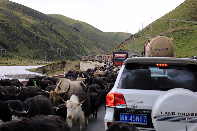 318上带挂的大车特别多,路窄车多,安全比速度重要。另外,牦牛是大哥,遇到要让行。