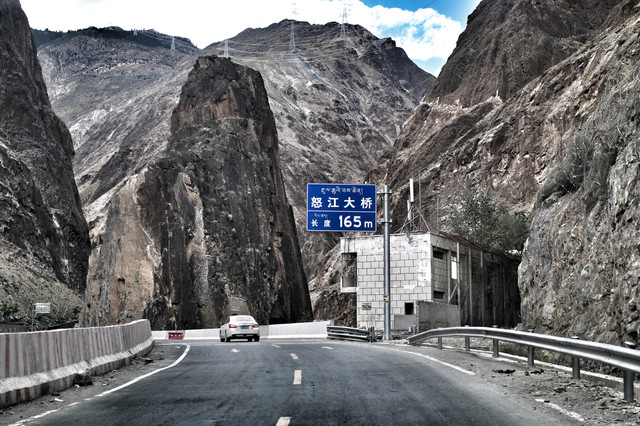 这一天的路很艰险啊。巴塘到竹巴龙在修路,20公里的路坑坑洼洼,尖石可能随时划破。 由于要在金沙江上建水电站,一部分老路将会被淹没,新路在山边凿路,挖掘机,油罐车在路上作业,一堵就是一个多小时。过了金沙江大桥,路就好走了,进入昌都界。在昌都检查站要下车刷身份证和健康码。之后进入藏界。