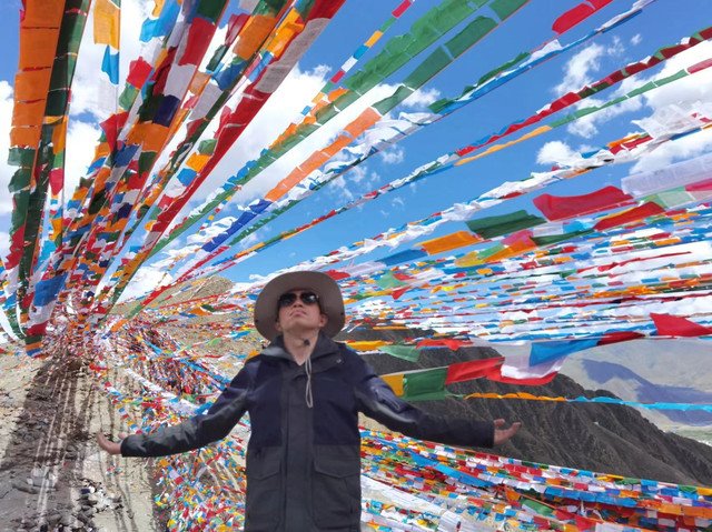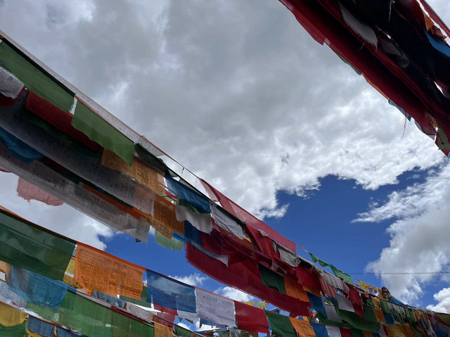 站在经幡下看着蓝天白云,听着风吹过诵读的声音,心情很平静