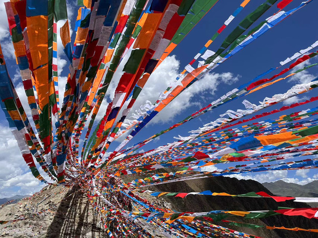 经过拉萨之后先到了纳金山,这里的经幡横贯两座山头,我们在这里撒完了最后的隆达,很可惜没有提前买好经幡,这里也没得卖,没机会挂上。有一个小姑娘自己一个人拉着百来米的经幡两座山头来回跑,或许这就是一种信仰和体验吧。