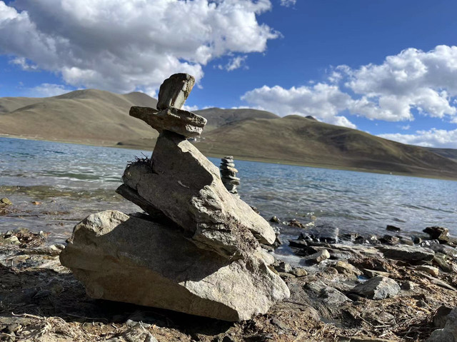 我们一人找了一块石头,堆了一个玛尼堆,风每吹过羊湖一次,高原就替我们祝福大家一次。