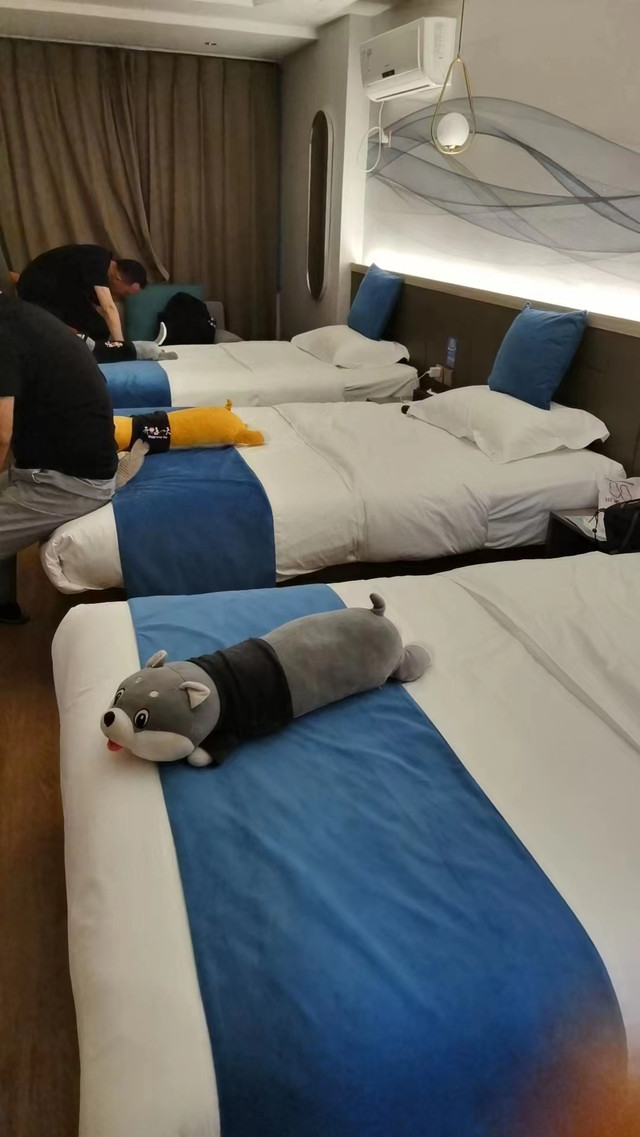 入住雅安的酒店,三人床,同行的小伙伴呼噜惊人