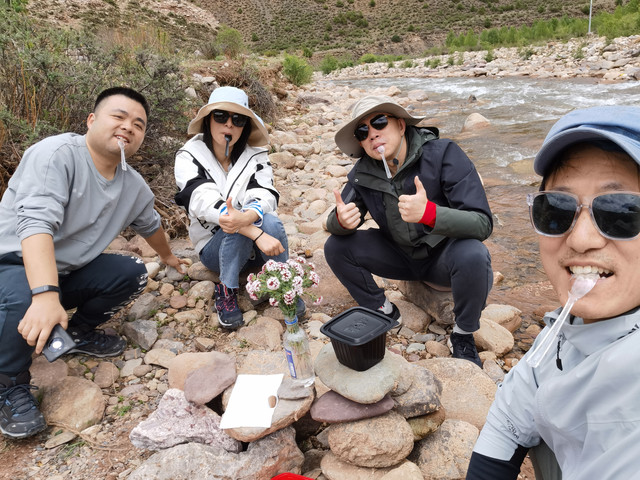 接着说说沿途的吃饭,我们一路跟着排行榜吃,一路尽是惊喜,不吃辣的浙江人倒是也如鱼得水,甜茶、荞麦饼、各种鸡、各种牛羊,本来以为是苦行之旅,变成了美食之旅,出发之前准备的方便面、自热米饭要不是主动在雪水溪流边加餐还真是用不上。
