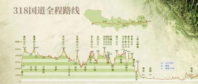 去程:成都—雅安市—天全县—二郎山—康定县—新都桥—雅江县—理塘县—稻城县—亚丁,全长800多公里