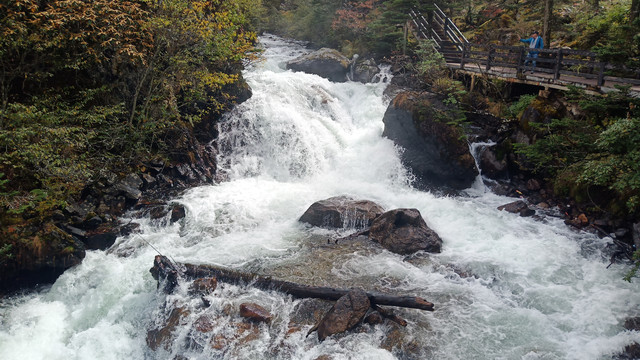 双桥沟的观光车站点随上随下,走路还是乘车可以自由选择。