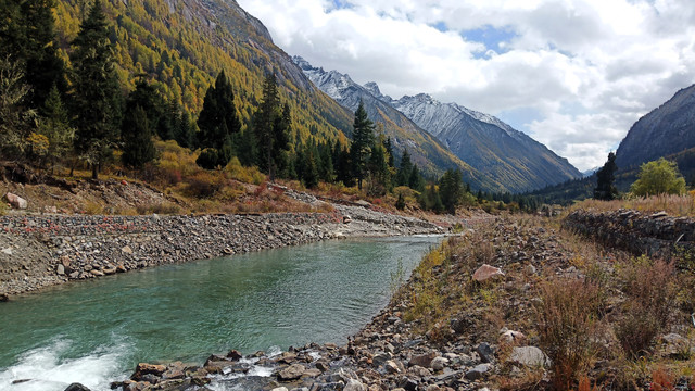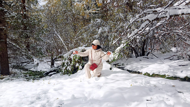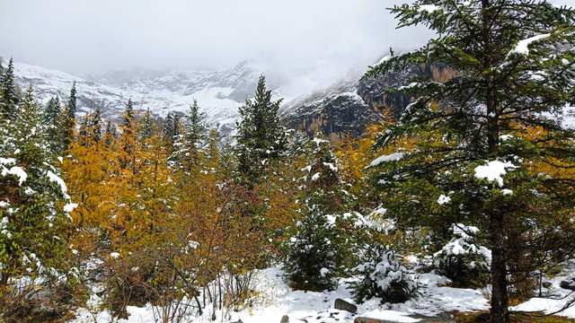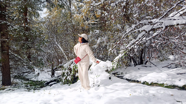 十月的秋天叶子黄了,如果不是漫天飞舞的大雪,看到的就应该是这样黄绿相间的景象。