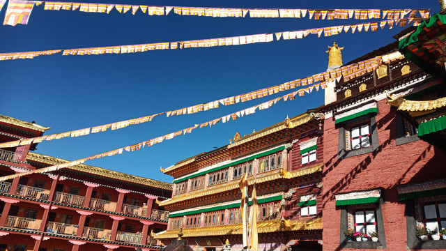 下午赶往香格里拉镇,路上的贡嘎朗吉岭寺,进去看了看,一僧人大致介绍了一下寺庙的情况。