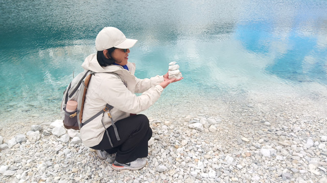 湖边都是洁白的石块。