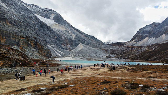 终于到了牛奶海,从洛绒牛场开始步行算起用时5小时,关键是在高海拔地区容易缺氧的状况下行走实属不易,这一段路程真的是很考验人的意志。