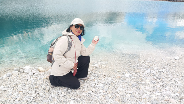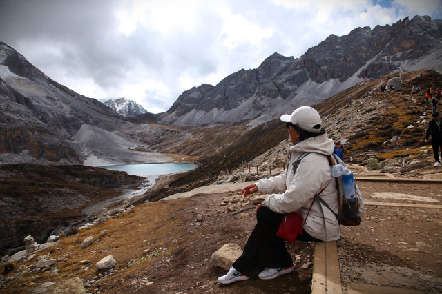 牛奶海往上百米到达五色海,个人体会五色海的美不如牛奶海,但是到了4700米的海拔其周围的石山之美令人震撼,幸运能如此近距离的观山,感受山体的陡峭绝壁,坚如磐石,坚不可摧,岿然不动,险峻壮观。