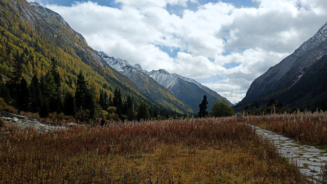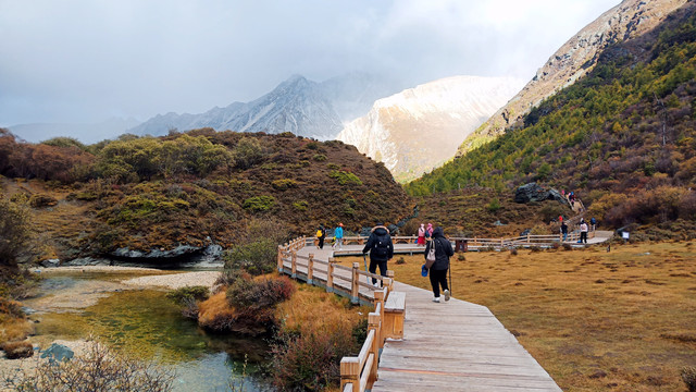 这里便是洛绒牛场,从这里开始徒步5公里,贡嘎措之前的平铺栈道好走,慢行不容易高反。