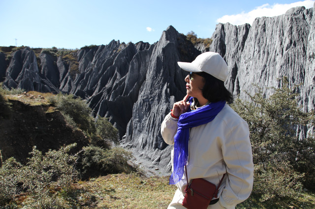 石山的形状尖尖的直冲云霄,这一类的石山也只有在高海拔的地方才能得以一见,此生难忘。