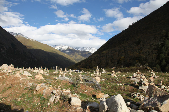 川西有很多这样的石堆,石匾上有六字真言。