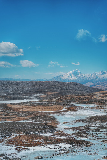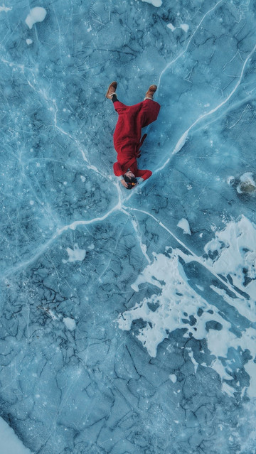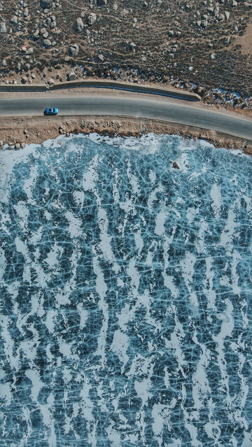 川西 的冬季,4000海拔以上的海子都会结冰,纯净的湖水在结冰后会呈现通透的蓝色,非常梦幻。拿石头砸一砸,要是发现冰层够厚,就可以大胆地走在冰面上了。当然,也不要走太深入,安全还是需要注意的。