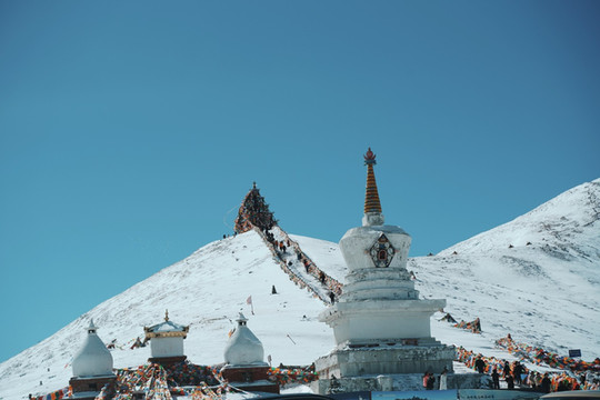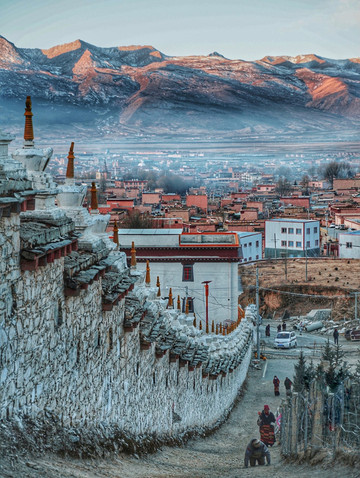 我们再看一眼这座世界高城的日落吧!蜿蜒曲折的小路通向山巅,山尖尖仿佛就是神域,拥有着民族特色的寺庙白塔增加了这里的异域特色,每一次按下的快门都让人十分感动。