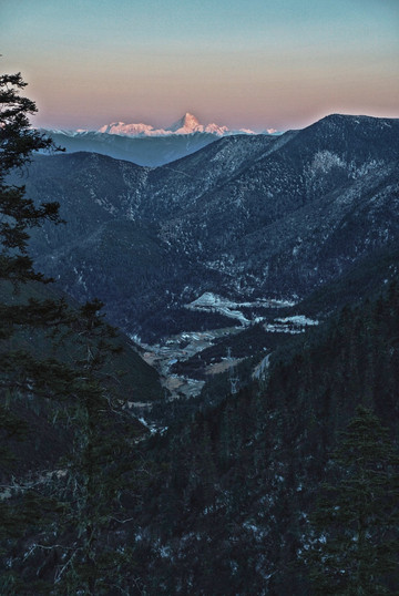 沿着这盘山公路一路到顶,查看了一下海拔已达4400米,空气变得稀薄,呼吸已然有些喘,但却被那天边的粉紫色 贡嘎 雪山金顶治愈了疲惫的身心。