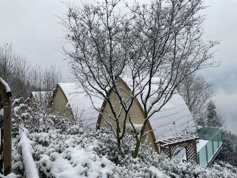 雪国风光,千里冰封,万里雪飘。川西红枫岭完美复刻了诗中的雪国风光,未到目的地,山腰迫近红枫岭的一路车行便雪色连绵,窗外飞雪洒落,片片雪花落满林梢树头,天气虽冷,却盖不过对雪的火热心情。路上,还偶遇憨态可掬的小猕猴在雪林中忘情嬉戏,不禁哑然一笑。待到红枫岭,这里已经变作纯正的雪国童话。无论树梢枝头,亦或屋头建筑,全部镀上一层银装,天空中下起的雪花更让红枫岭雪天一色。
