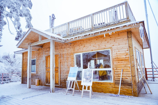 这次我们就住的这里,海拔2900米,位于王岗坪最高处的森林里,冬天这里的雪和雾凇都最漂亮,特别是旁边的怪树林,就算天气不好,这里也能出片。整个木屋就是 北欧 风,就像住在冰雪里的童话世界一样。