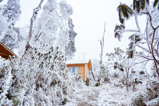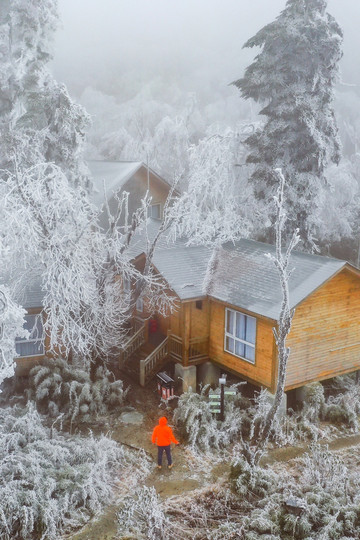 冬天这里真的太美了,山上的雾凇和小木屋,仿佛置身 北欧 的童话世界,天气好的时候,直面 贡嘎 雪山和云海。