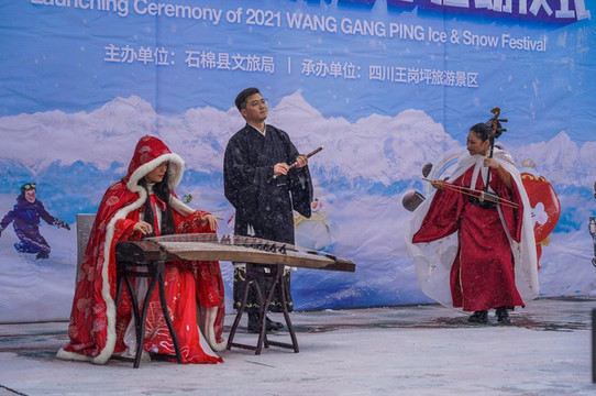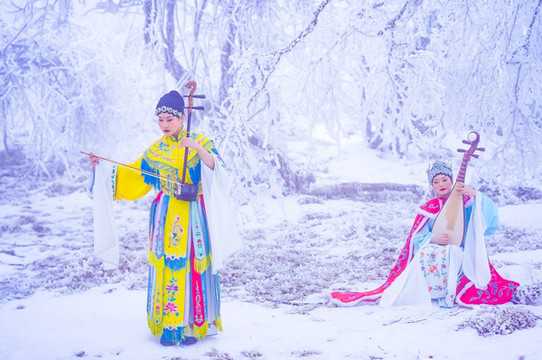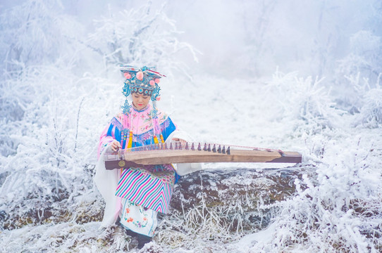 现在还请来了民族乐的大师,在冰雪里为我们演奏。