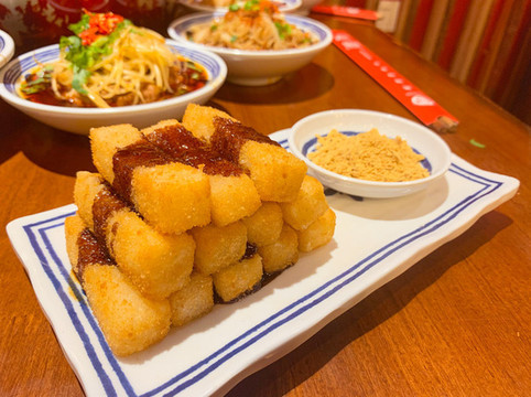 红糖糍粑:甜点爱好者的优选,口感软糯,香滑Q弹,夹一块咀嚼,米香料香在口中飞舞, 非常好吃!