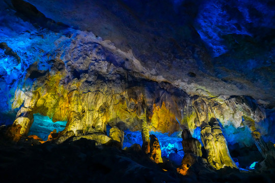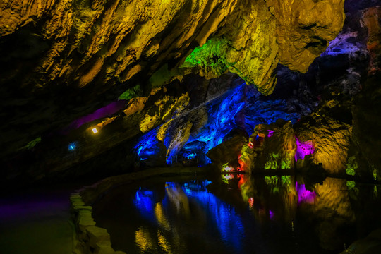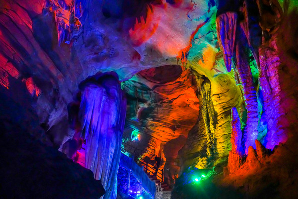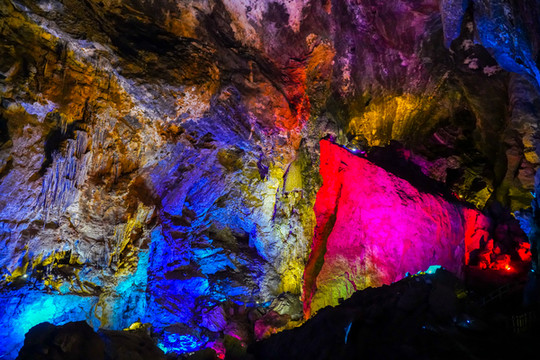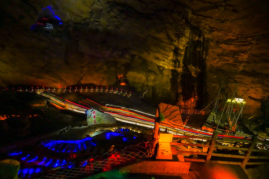 古朗洞分为上、中、下三层,洞内景观奇特,暗河密布,暗河长达数十公里,不同于大黑洞的惊险刺激,这里就是灯光盛宴了,去过很多溶洞,古郎洞里的灯光运用真的非常高级,有巨大的“诺亚方舟”,神圣的“希腊宫殿”,错落有致的“洞中黄龙”…如梦如幻,美极了!