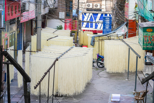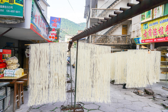 古蔺的老街上挂着一排排手工制作的面,长长的面随风摇曳,已经成了一道独特的风景线!古蔺人每天早上都还是喜欢吃上一碗豌杂面再去上班或者上学,甚至一天三顿吃面都可以,来泸州旅游的朋友们一定要带些古蔺手工面回去哦!