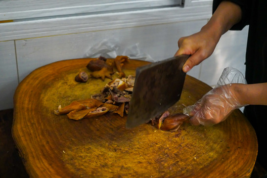 是我来古蔺之前最最最向往的,之前看《舌尖上的中国》就被深深的种草了,这次终于如愿以偿,品尝到了最正宗的古蔺麻辣鸡。古蔺的麻辣鸡是先卤过再蘸红油,如果你不能吃辣,不蘸红油直接吃也是很好吃的,麻辣鸡可以说是古蔺最有特色的美食,一定要品尝一下,党伴手礼带回去也是首选。